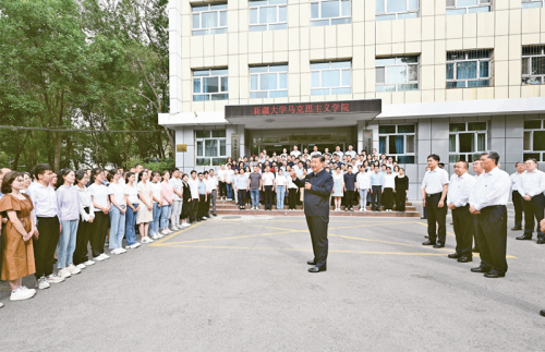 2022年7月12日至15日,中共中央总书记、国家主席、中央军委主席习近平在新疆考察。这是12日下午,习近平在新疆大学考察时,同师生们亲切交流。 新华社记者 李学仁/摄