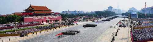 九月三日,纪念中国人民抗日战争暨世界反法西斯战争胜利八十周年大会在北京隆重举行。这是徒步方队接受检阅。新华社记者 孙非 摄 铭记伟大历史胜利,凝聚正义和平力量。9月3日上午,纪念中国人民抗日战争暨世界反法西斯战争胜利80周年大会在北京天安门广场隆重举行,以盛大阅兵仪式,同世界人民一道纪念这个伟大的日子,共同开创更加光明的未来。中共中央总书记、国家主席、中央军委主席习近平发表重要讲话并检阅受阅部队。 中共中央政治局常委李强主持大会。中共中央政治局常委赵乐际、王沪宁、蔡奇、丁薛祥、李希,国家副主席韩正出席大会。61位外国国家元首、政府首脑及有关国家高级别代表、国际组织负责人、前政要等出席大会。 首都北京,花团锦簇,旌旗飘扬。天安门城楼庄严雄伟,天安门广场气象恢宏。人民英雄纪念碑前,“钢铁长城”主题景观巍然矗立,14座烽燧托举起“1945”“2025”字样,14只“和平鸽”振翅飞翔。从空中俯瞰,广场中“众”字造型观礼台蔚为壮观,象征着在中国共产党领导下中国人民万众一心、众志成城,向着中华民族伟大复兴昂扬奋进。 上午8时35分,习近平同出席大会的外方代表团团长拾级而上,登上天安门城楼。习近平同抗战老战士老同志代表亲切握手,向他们表示崇高敬意。 《松花江上》《在太行山上》《保卫黄河》《没有共产党就没有新中国》,一首首诞生于抗战烽火中的经典歌曲连唱,让大家重温中华民族那段艰苦卓绝、气壮山河的峥嵘岁月。 8时55分,习近平等中外领导人来到天安门城楼主席台,全场爆发出雷鸣般的掌声。 电子屏幕上出现钟摆的画面。随着钟摆,1945、1955、1965……2025的年份数字依次显现。9时整,报时钟声响起,纪念大会开始。 全体肃立,80响礼炮震彻云霄,国旗护卫队官兵护卫着五星红旗,迈着矫健的步伐,从人民英雄纪念碑行进至广场北侧升旗区。中国人民解放军联合军乐团奏响雄壮的《义勇军进行曲》,全场齐声高唱中华人民共和国国歌,鲜艳夺目的五星红旗冉冉升起,在天安门广场上空高高飘扬。 在热烈的掌声中,习近平发表重要讲话。他表示,今天,我们隆重集会,纪念中国人民抗日战争暨世界反法西斯战争胜利80周年,目的是铭记历史、缅怀先烈、珍爱和平、开创未来。 习近平代表中共中央、全国人大、国务院、全国政协、中央军委,向全国参加过抗日战争的老战士、老同志、爱国人士和抗日将领,向为中国人民抗日战争胜利作出重大贡献的海内外中华儿女致以崇高敬意,向支援和帮助过中国人民抵抗侵略的外国政府和国际友人表示衷心感谢,向参加今天大会的各国来宾表示热烈欢迎。 习近平指出,中国人民抗日战争是艰苦卓绝的伟大战争。在中国共产党倡导建立的抗日民族统一战线旗帜下,中国人民以铮铮铁骨战强敌、以血肉之躯筑长城,取得近代以来反抗外敌入侵的第一次完全胜利。中国人民抗日战争是世界反法西斯战争的重要组成部分,中国人民以巨大的民族牺牲,为拯救人类文明、保卫世界和平作出了重大贡献。历史警示我们,人类命运休戚与共,各个国家、各个民族只有平等相待、和睦相处、守望相助,才能维护共同安全,消弭战争根源,不让历史悲剧重演。 习近平强调,中华民族是不畏强暴、自立自强的伟大民族。当年,面对正义与邪恶、光明与黑暗、进步与反动的生死较量,中国人民同仇敌忾、奋起反抗,为国家生存而战,为民族复兴而战,为人类正义而战。今天,人类又面临和平还是战争、对话还是对抗、共赢还是零和的抉择。中国人民坚定站在历史正确一边、站在人类文明进步一边,坚持走和平发展道路,与各国人民携手构建人类命运共同体。 习近平指出,中国人民解放军始终是党和人民完全可以信赖的英雄部队。全军将士要忠实履行神圣职责,加快建设世界一流军队,坚决维护国家主权、统一、领土完整,为实现中华民族伟大复兴提供战略支撑,为世界和平与发展作出更大贡献。 习近平强调,新时代新征程,全国各族人民要在中国共产党坚强领导下,坚持马克思列宁主义、毛泽东思想、邓小平理论、“三个代表”重要思想、科学发展观,全面贯彻新时代中国特色社会主义思想,坚定不移走中国特色社会主义道路,传承和弘扬伟大抗战精神,踔厉奋发、勇毅前行,为以中国式现代化全面推进强国建设、民族复兴伟业而团结奋斗。 习近平最后强调,中华民族伟大复兴势不可挡!人类和平与发展的崇高事业必将胜利! 习近平讲话结束时,全场响起长时间热烈掌声。 9时15分,阅兵仪式开始,标兵就位,军乐团吹响阅兵式号角。习近平乘红旗检阅车,经过金水桥,驶上长安街。阅兵总指挥韩胜延报告受阅部队列队完毕,习近平下达检阅开始的命令。中国共产党党旗、中华人民共和国国旗、中国人民解放军军旗在受阅部队最前方,习近平乘车行进至党旗、国旗、军旗前,向旗帜行注目礼。 雄壮的军乐声中,习近平乘车沿着宽阔的长安街,依次检阅13个徒步方队、1个战旗方队、22个装备方队。受阅部队军容严整、意气风发,铁甲战车整齐列阵、威风凛凛。这是人民军队奋进建军百年的崭新亮相,这是中华民族捍卫世界和平的坚定宣示。 “同志们好!”“同志们辛苦了!”习近平的亲切问候振奋军心。“主席好!”“为人民服务!”受阅官兵斗志昂扬,响亮的回答声震长空。习近平乘