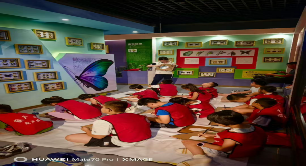 创意绘画课让孩子们与自然之美撞了个满怀。老师先介绍了蝴蝶翅膀的对称结构和色彩奥秘,孩子们拿起画笔,有的临摹自然中真实的蝴蝶品种,有的则发挥想象,创造彩虹翅膀的“魔法蝴蝶”。在勾勒对称轮廓、调配渐变色彩的过程中,他们既感受了艺术创作的快乐,也悄悄记下了关于生物多样性的科学知识。