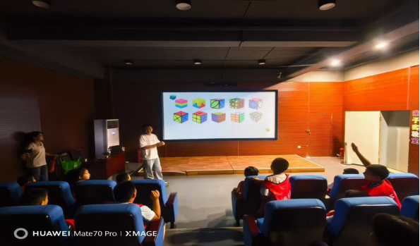 魔方速学课掀起了体验课的小高潮。老师手把手教学,从认识魔方结构到掌握基本公式,孩子们学得专注又投入。当自己手中的魔方在短时间内恢复原状时,成就感写满了他们的脸庞。 ![]()