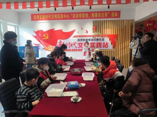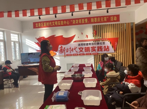 龙港区新时代文明实践中心在元旦春节期间开展了以“志愿服务送关爱 文明实践树新风”为主题的系列志愿服务活动。2月3日,龙港区新时代文明实践中心带领志愿者们走进连湾街道帝泊印象社区,开展 “浓浓邻里情,翰墨庆元宵”活动,进一步弘扬中华民族优秀传统文化,营造喜庆热烈、安定团结、欢乐祥和的节日氛围。