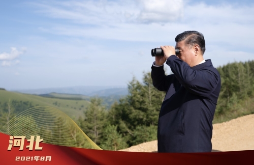 2021年8月,在塞罕坝林场,习近平总书记登上月亮山,俯瞰荒原变林海的人间奇迹。习近平总书记指出,“我们建这片林,它的生态屏障作用,要永远发挥下去。” 从“绿水青山就是金山银山”到“山水林田湖草沙一体化保护和系统治理”,习近平生态文明思想如同春风化雨,推动着矿坑蝶变、沙地披绿。放眼中华大地,生态屏障持续筑牢,人与自然和谐发展。 人民为本
