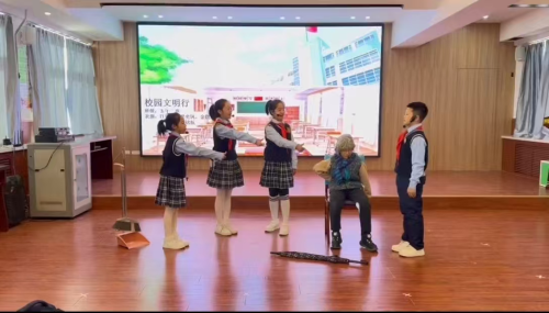 文明礼仪情景剧 弘体尚美,潮平岸阔好扬帆 为锻炼学生体魄,发展学生特长,学校成立了学生运动队,常年开展活田径、乒乓球、排球、足球等大课间活动,让每一位学生都参与到体育锻炼中。“双减”政策在学校落地生花,舞蹈社团、围棋社团、烹饪社团、艺术社团等社团为学生发展个性,结出累累硕果,发展特长提供了广阔的舞台。学校每年组织开展爱老敬老、清明祭英烈、跳石沟综合实践等社会实践活动,走进敬老院、烈士陵园、辽宁帝华味精食品有限公司等进行思政教育。引导学生从课上走到课下,从校内走到校外,从思想认知到亲身体验,从实践体验逐步内化为终身受益的行为习惯和道德自觉。