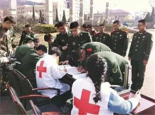 4月7日,市红十字会组织市中心血站红十字志愿者来到市武警边防支队,开展造血干细胞知识普及宣传活动。
