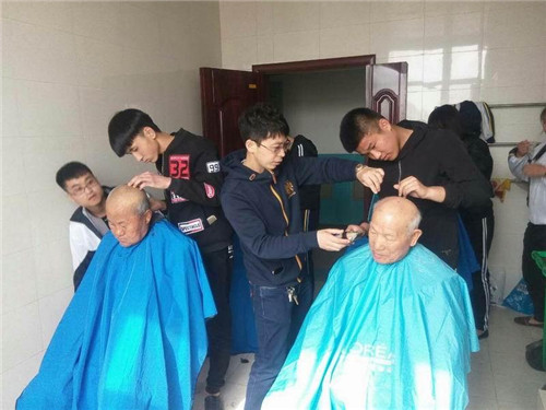 近日,市一职专校团组织积极开展“一学一做”教育实践活动。4月16日,在团委杨坤书记和李文博老师的组织带领下,市一职专美发、电商等专业20余名学生再度走进葫芦岛市连山区仁爱老人护理院,为护理院的老人们理发、清洗衣物、挂窗帘、过生日等。